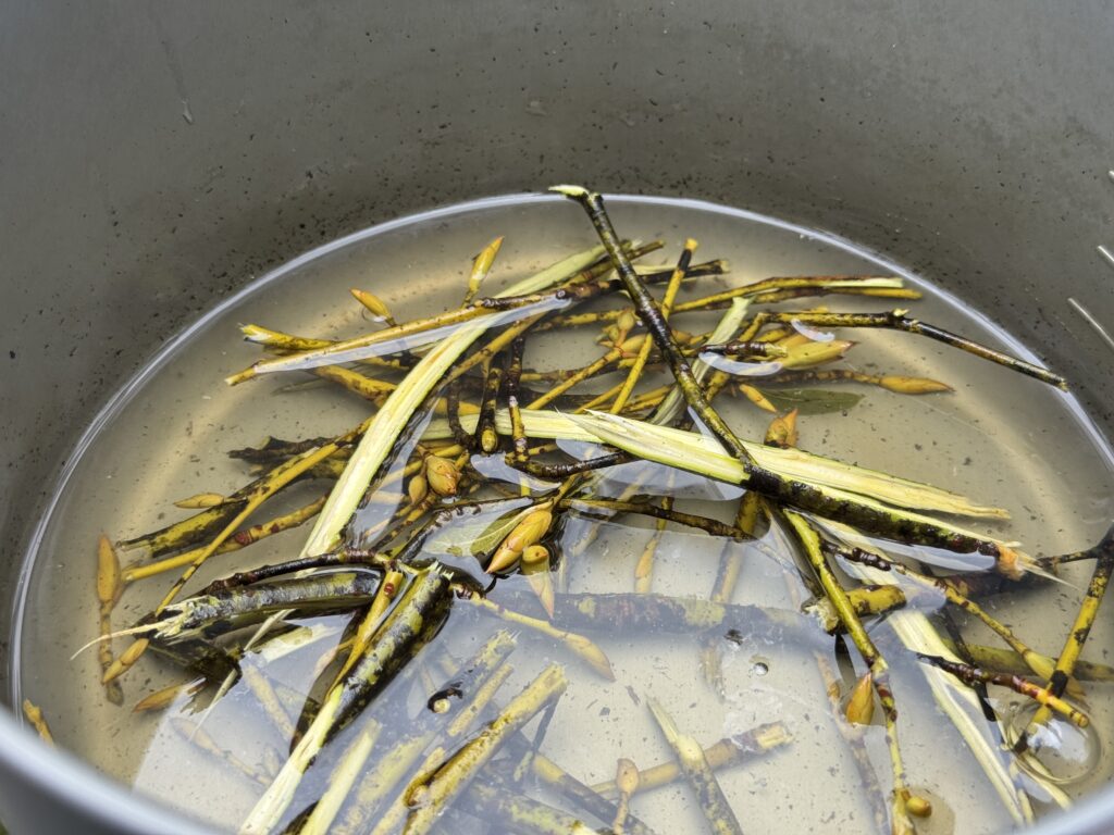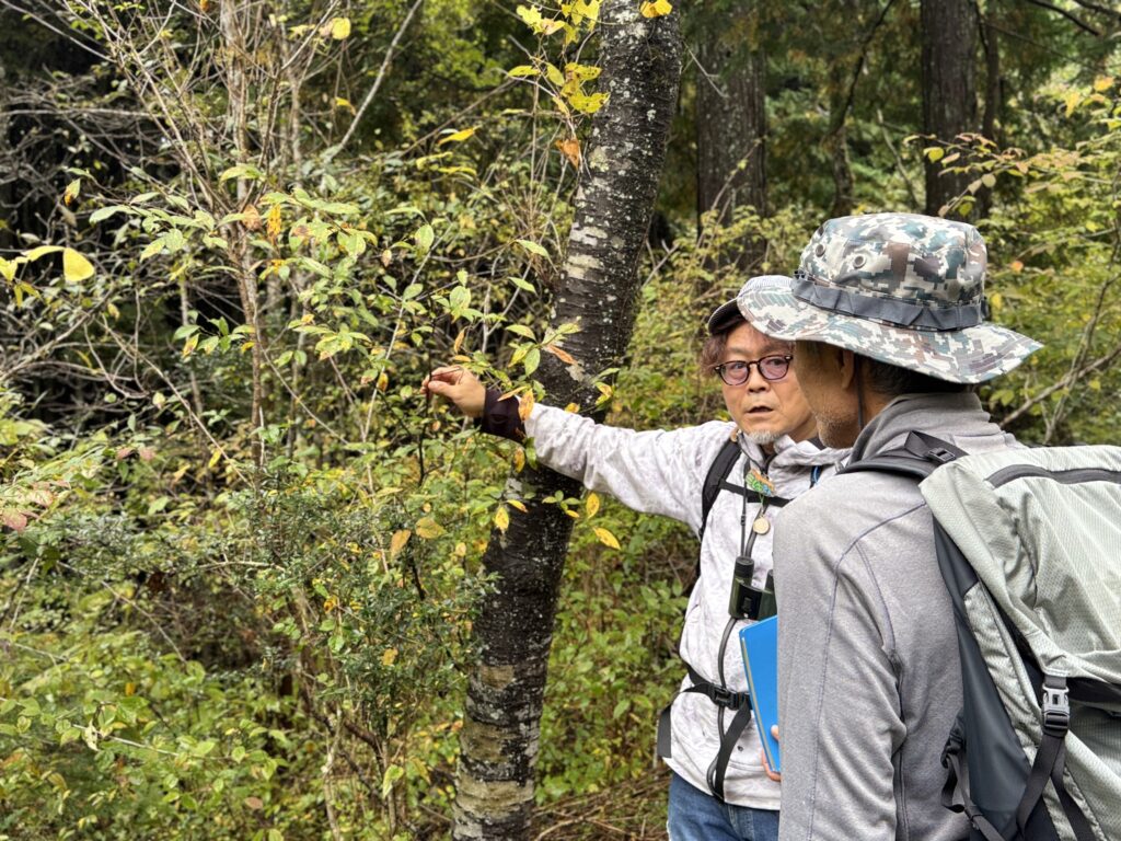 途中、クロモジの葉を見つけて香りを嗅いでみると、すっきりとしたいい香り。今回はクロモジ茶も登場し、「香りがいい」との声あり、リラックスできました。