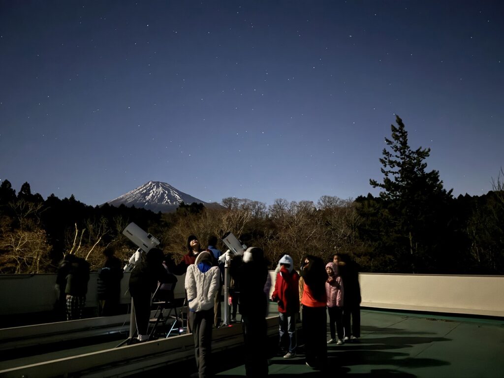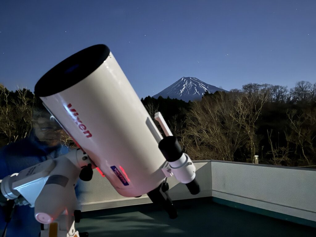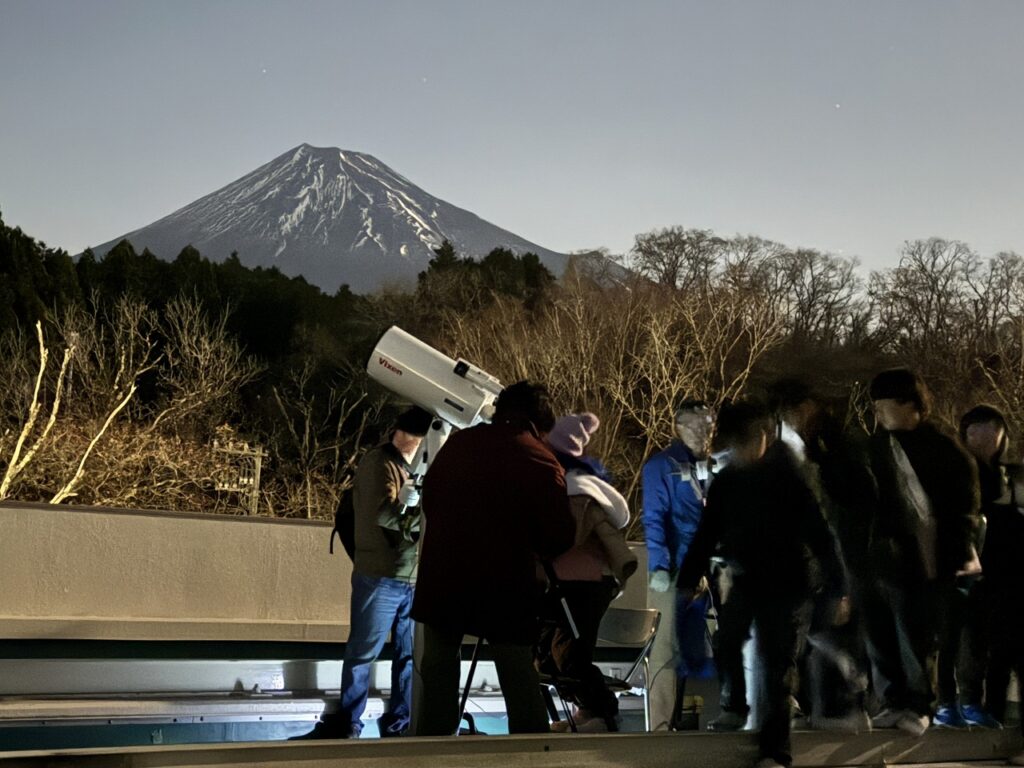 望遠鏡で土星を眺め、富士市の夜景もばっちり。雲がほとんどなく、月明かりの下での観察は格別でした。