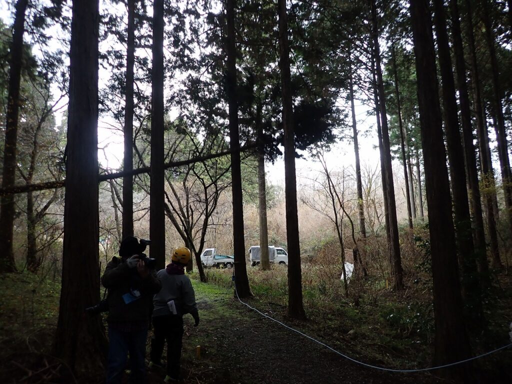 まず最初の活動は丸火自然公園内での森林学習です。富士市林政課と森林組合の方々の指導のもと、公園内の間伐作業に挑戦しました。