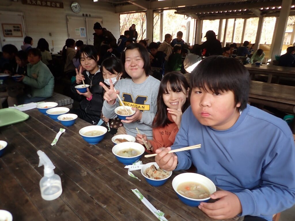 昼食は青少年の家で、あたたかい豚汁と混ぜご飯をいただきました。