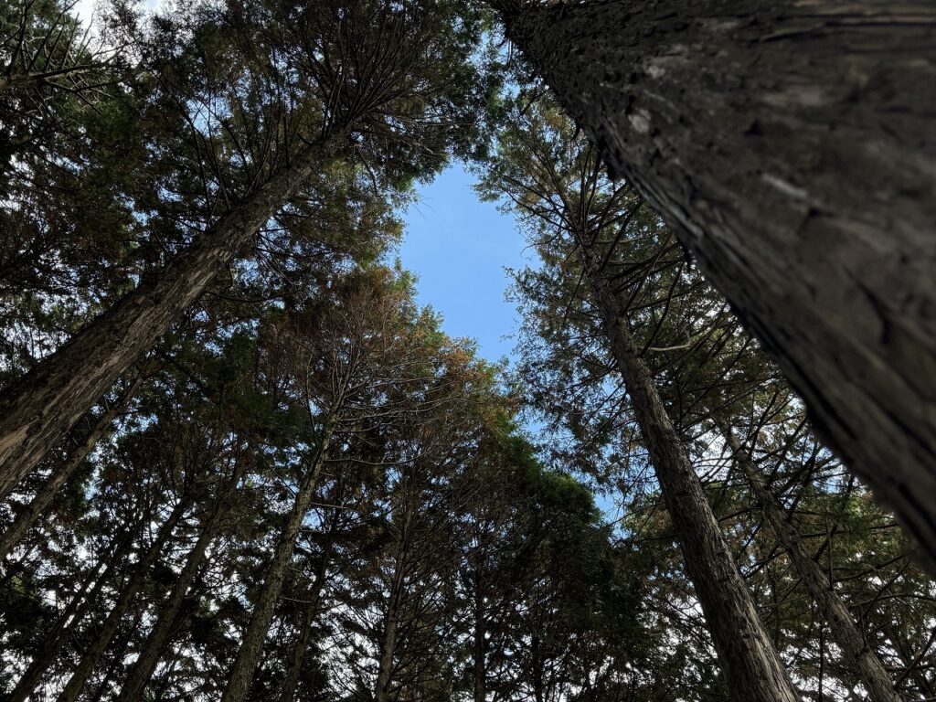 森林組合の方からは、道具の説明やチェーンソーの実演を見せてもらい、いよいよヒノキを倒します。森林組合の方が切れ込みを入れ、子どもたちはロープを使って綱引きのように力を合わせて引っ張ります。木が倒れる瞬間は緊張が走りましたが、すぐに達成感に満ちた表情になっていました。木くずの香りをかいだり、森に差し込む光を感じたりと、印象に残る体験になりました。
