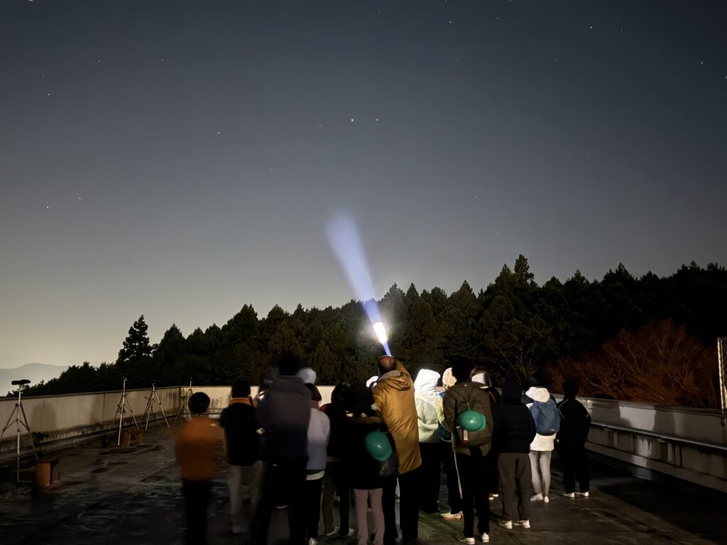 夕食の後は、星座の話や劇を楽しんだあとは、屋上で天体観測です。