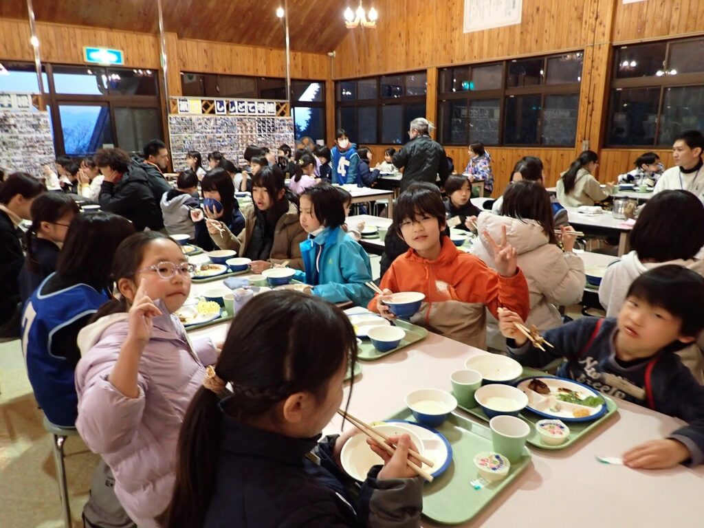 朝のつどいでラジオ体操をした後は、自然の家の清掃活動です。朝からしっかり体を動かしたので朝ごはんをしっかり食べてエネルギーチャージ!