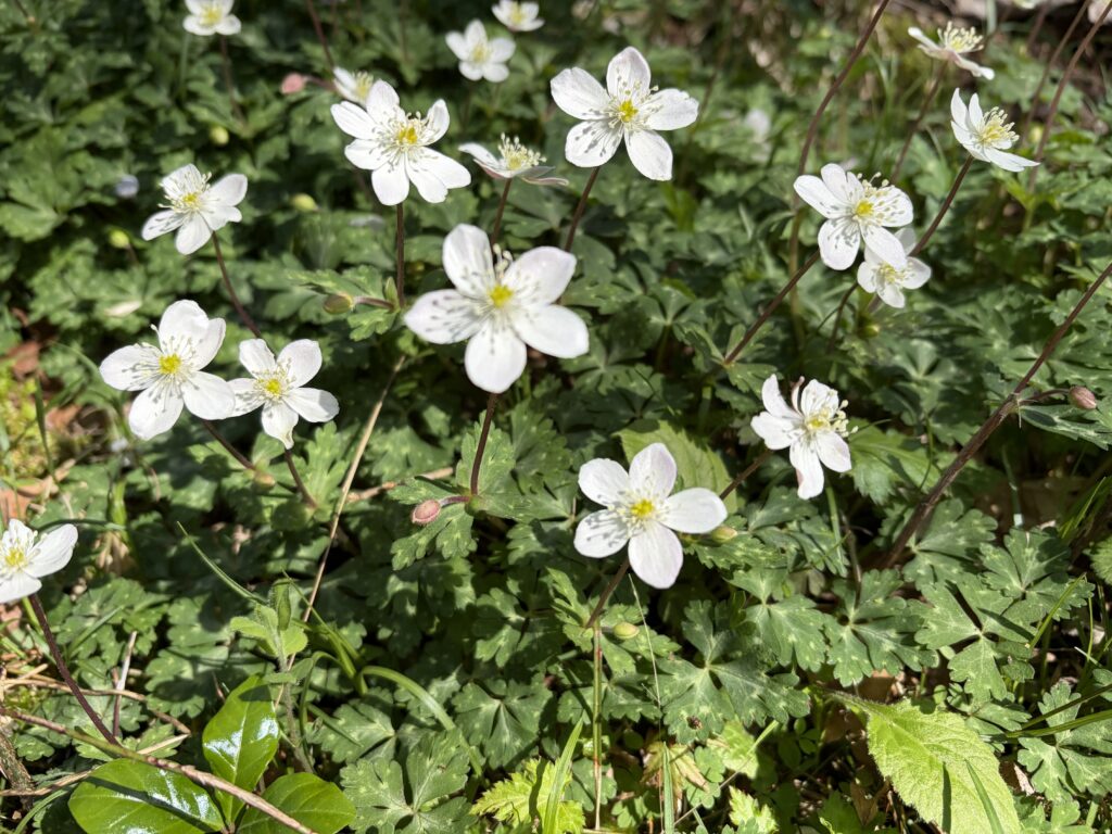 ①「ニリンソウ」が満開でした!スプリング・エフェメラル【春の妖精】(早春に一番に咲きだして短期間で姿を消してしまう)とも呼ばれているお花の一つです。