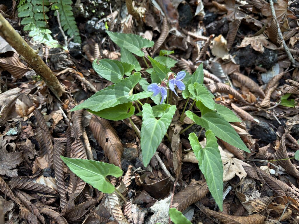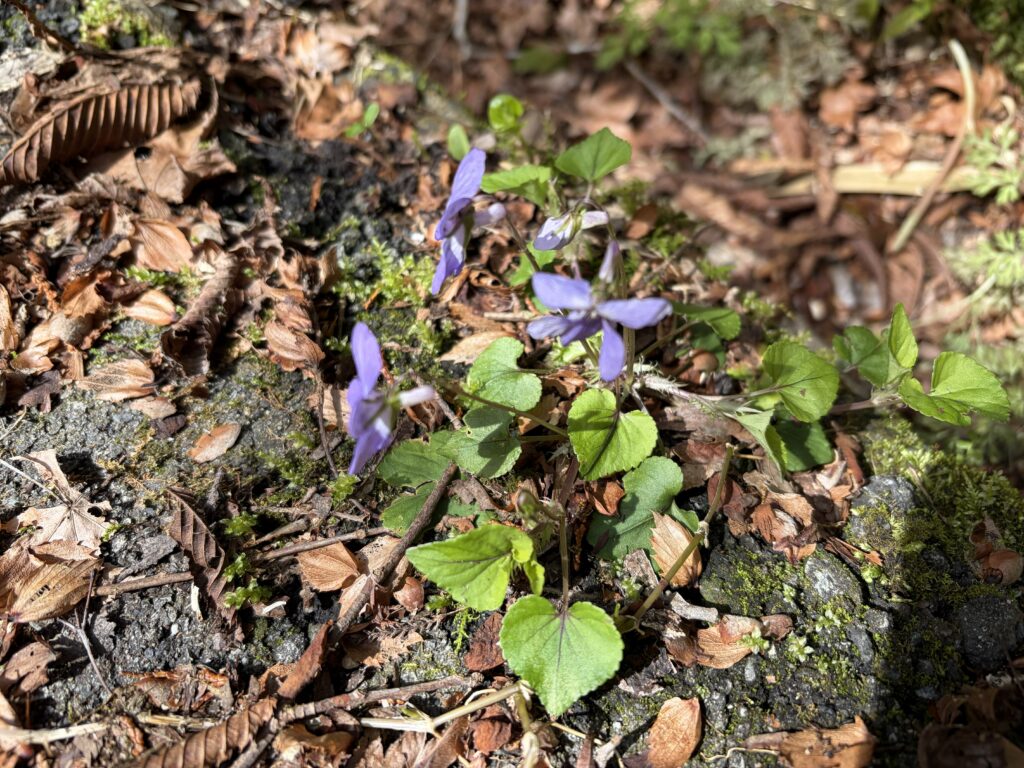 ③「タチツボスミレ」は葉がハート型です。すみれは色々な種類がありますが、丸火自然公園内のあちらこちらで見られます。